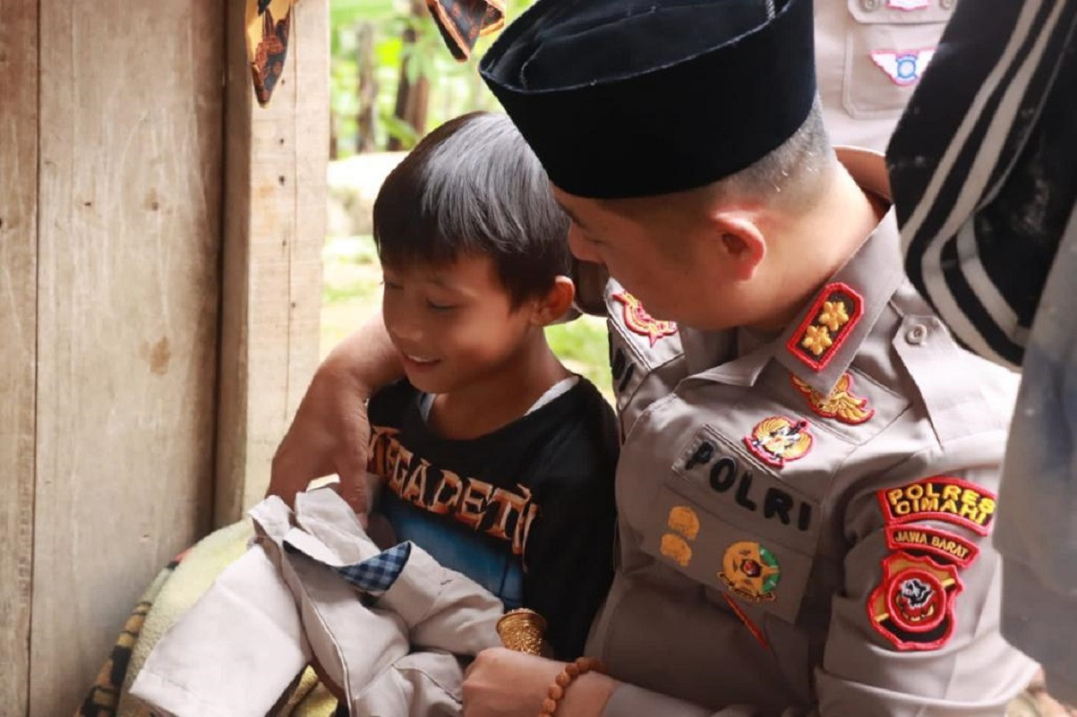 JPNN.com, CIMAHI – Keluarga Ibu Riskawati berbahagia saat anaknya mendapatkan paket lebaran berupa baju dan sepatu lebaran dari orang nomor satu di Polres Cimahi, Selasa (11/4).